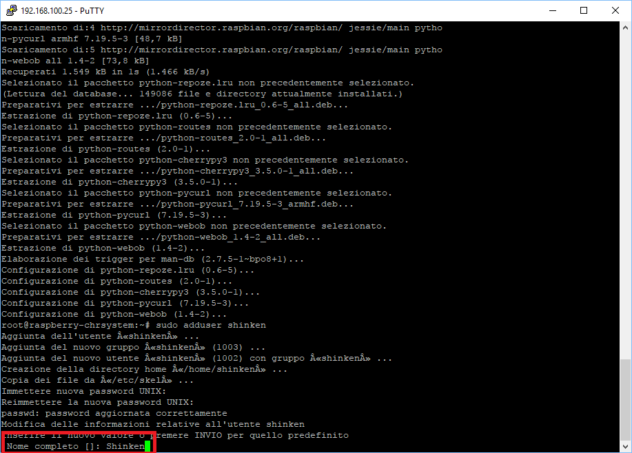 Lanciare quindi il comando riportato si seguito per il download di Shinken