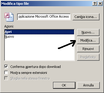 - Posizionarsi sul comando “apri” e cliccare su modifica