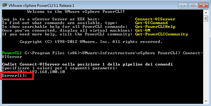 Aprire la PowerCLI e loggarsi come visto precedentemente per la procedura di backup.