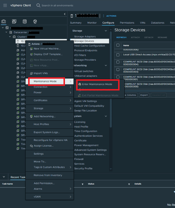 Mettere l’host in Maintenance Mode
