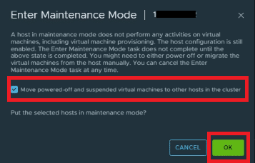 Selezionare l’opzione Move powerd-off and suspended virtual machines to other hosts in the cluster quindi premere OK