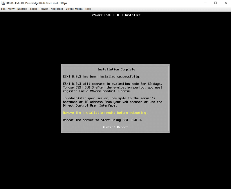 Rimuovere il media di ESXi quindi premere Invio per riavviare l’Host