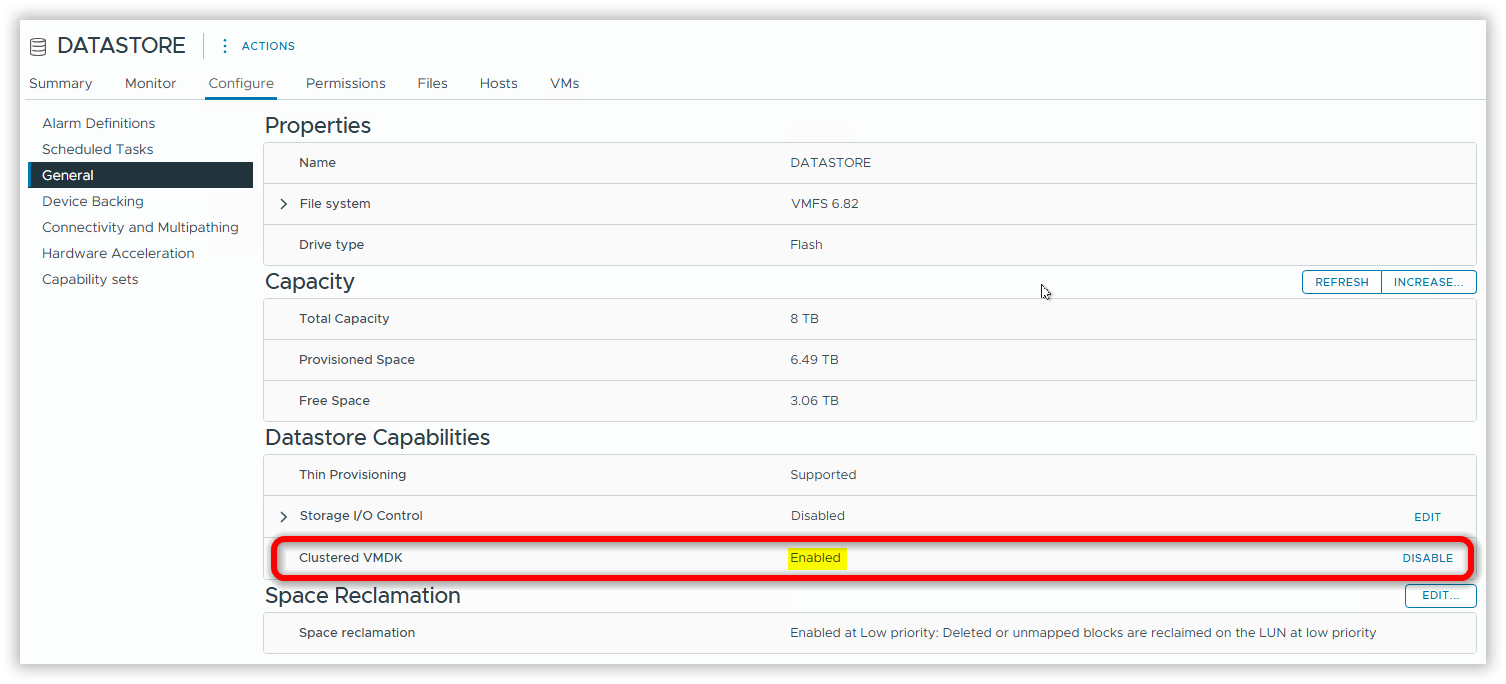 Clustered VMDK: Enabled