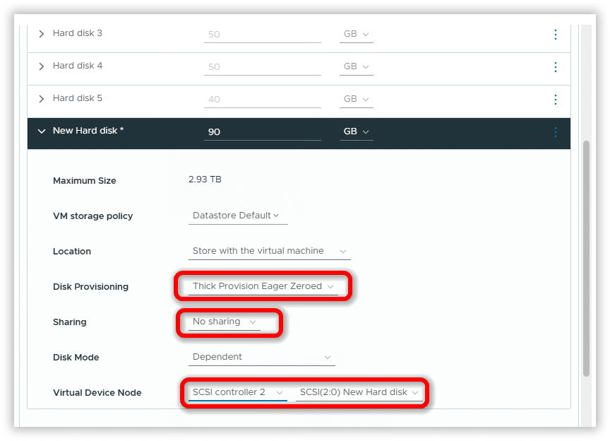 Disk Provisioning: Thick Provision Eager Zeroed
