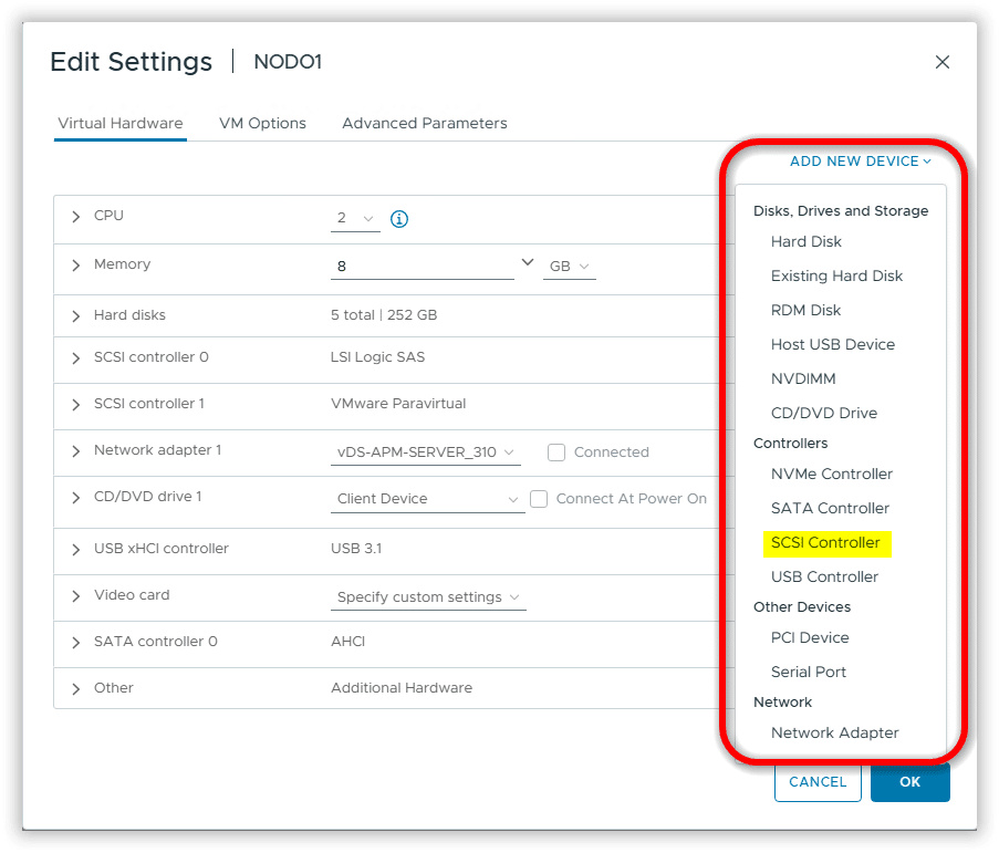 Aggiungere un nuovo SCSI Controller