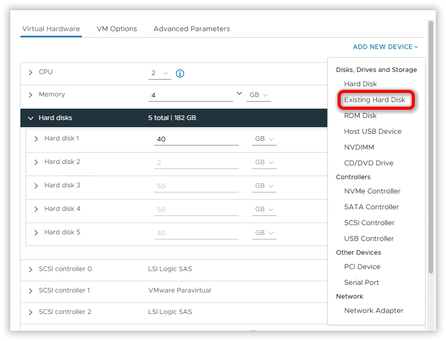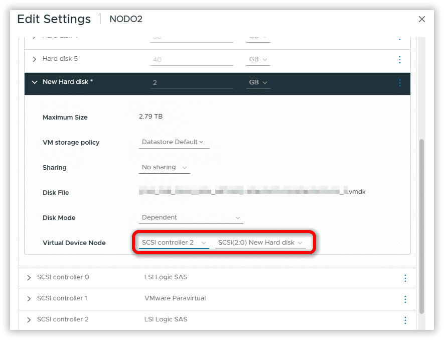 Collegare il VMDK a tutti i nodi del cluster utilizzando l’opzione Existing Hard Disk.