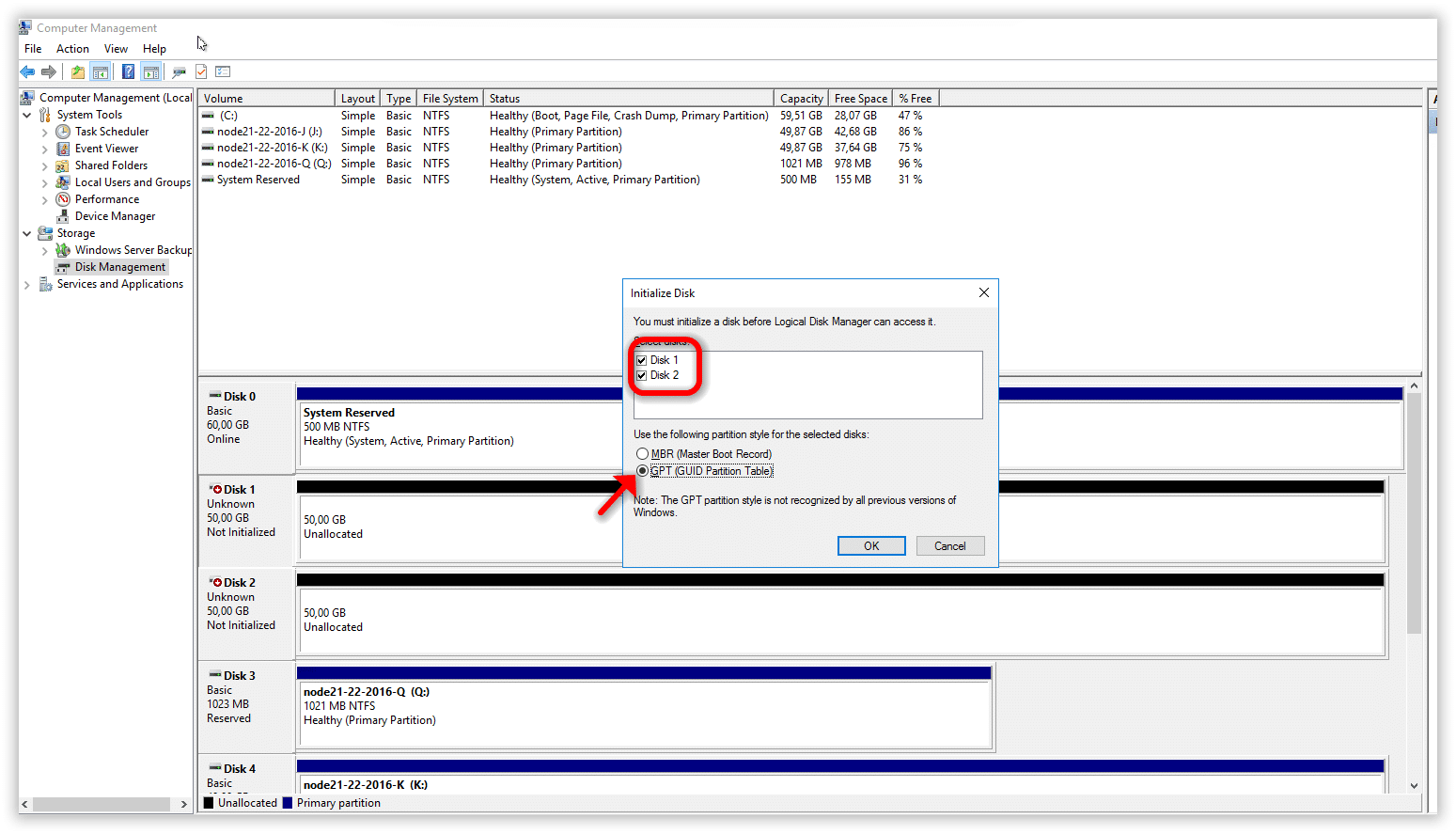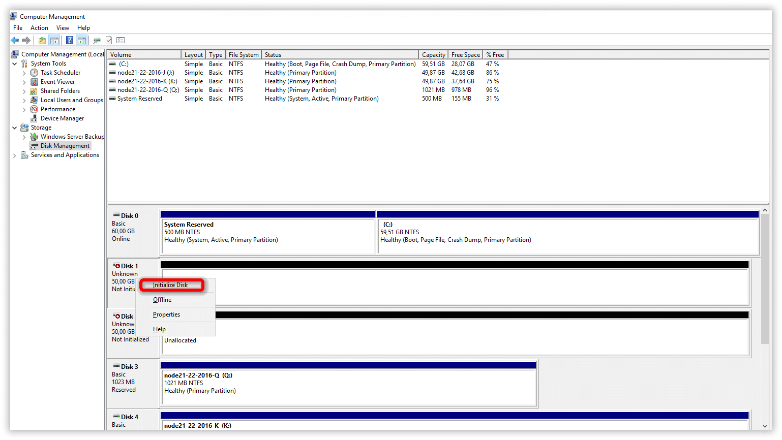 Cliccare su Initialize Disk