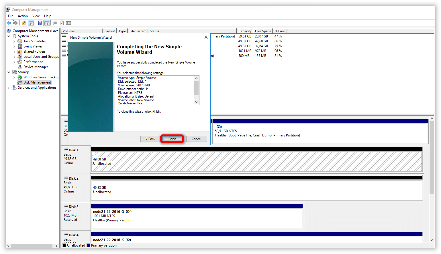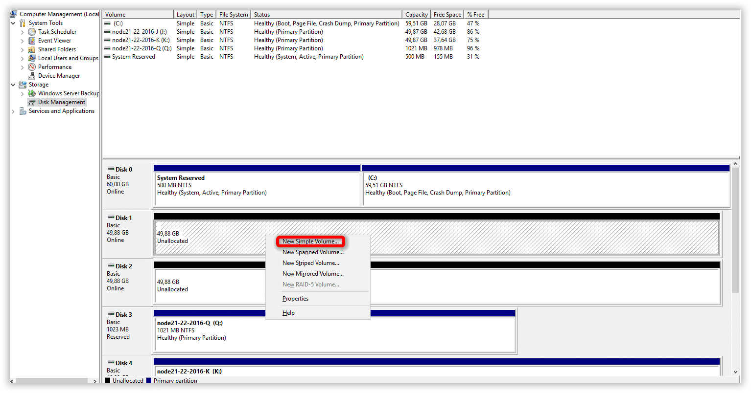 Selezionare New Simple Volume