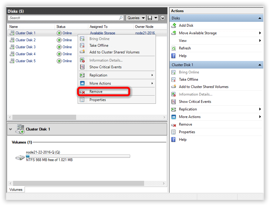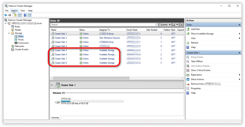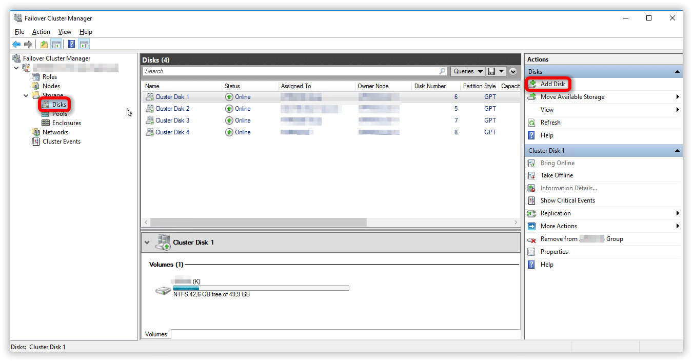Avviare Failover Cluster Manager e cliccare su Add Disk