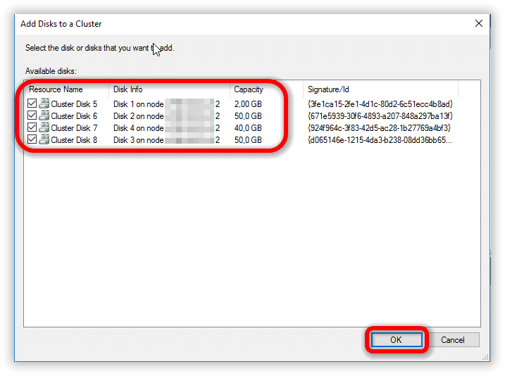 Selezionare tutti i dischi disponibili quindi cliccare OK