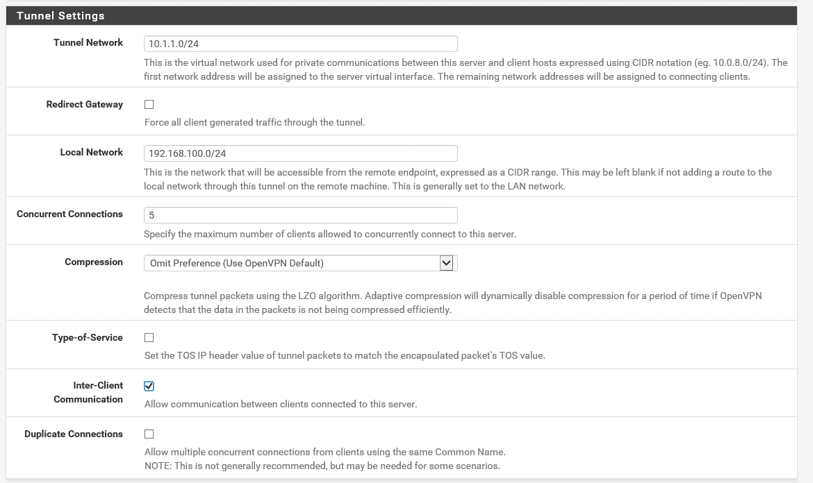 Impostare la Local Network.Questa è la rete che sarà accessibile dall’estremità remota, espressa come intervallo CIDR. Questo può essere lasciato vuoto se non si aggiunge una rotta alla rete locale attraverso questo tunnel sul computer remoto. Questo è generalmente impostato sulla rete LAN.