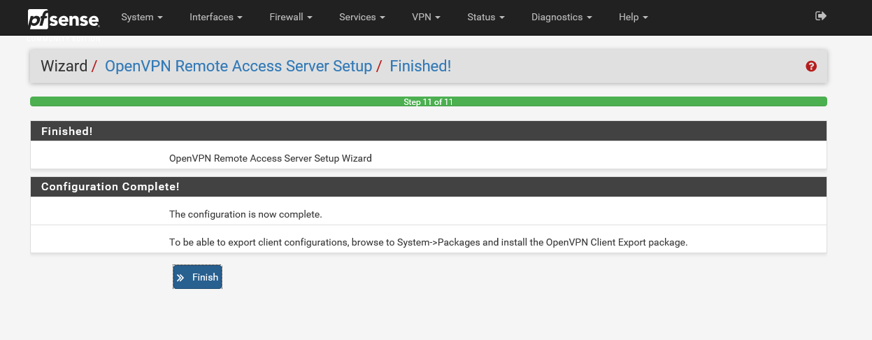 Selezioniamo entrambe le opzioni come mostrato nell’immagine sovrastante per aggiungere una regola per consentire le connessioni a questo processo del server OpenVPN dai client ovunque su Internet e per consentire Aggiungi una regola per consentire a tutto il traffico dei client connessi di passare all’interno del tunnel VPN.