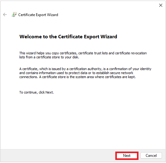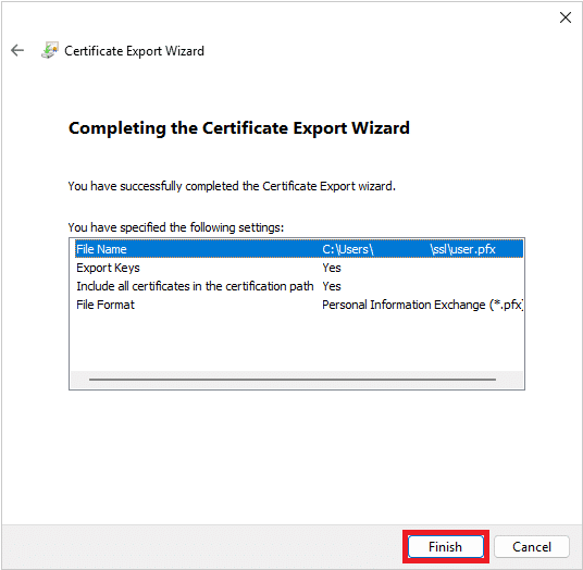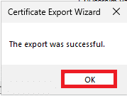 L’esportazione di una coppia di chiavi (certificato + chiave privata) dallo snap-in di Windows richiede che venga configurata una password o che vengano configurate delle ACL e che il formato dell’output sia PFX.