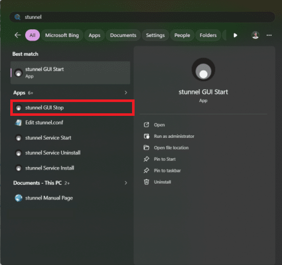 Per fermare i tunnels è possibile eseguire stunnel GUI Stop dal menù Start: