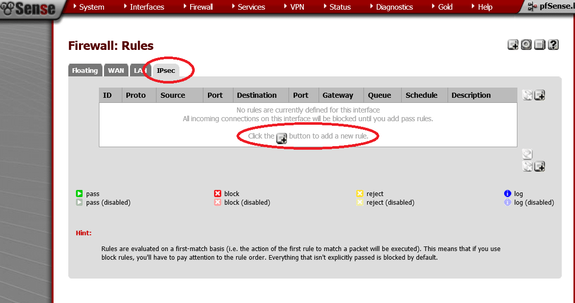 Selezioniamo la linguetta IPSec quindi clicchiamo sull’icona per aggiungere la regola