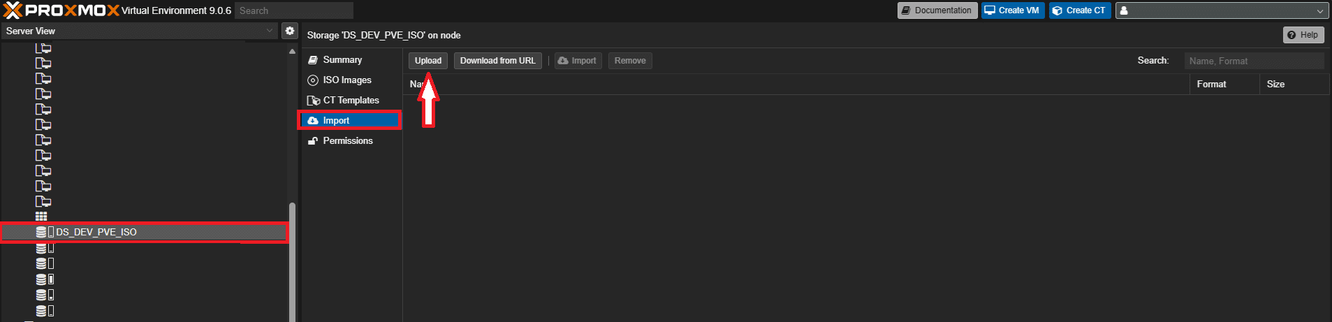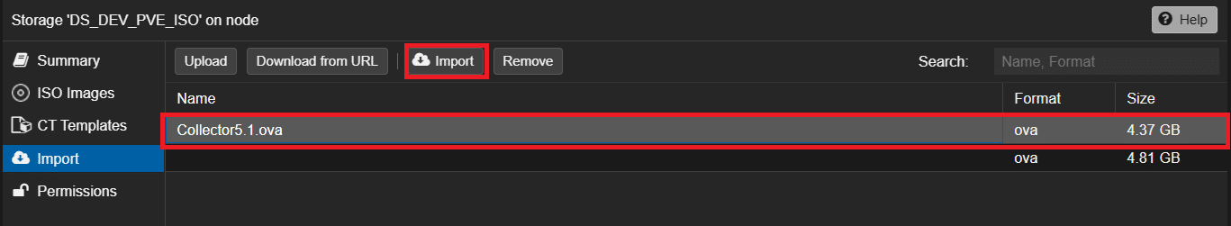 Proxmox supporta nativamente l’importazione di questo tipo di files, perciò è possibile creare una VM partendo da un file OVA direttamente dalla Web UI.