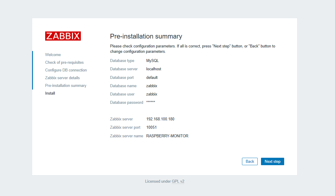 A questo punto richiamando il link http://IP_RASPBERRY/Zabbix dovremmo visualizzare la pagina di configurazione di Zabbix Server