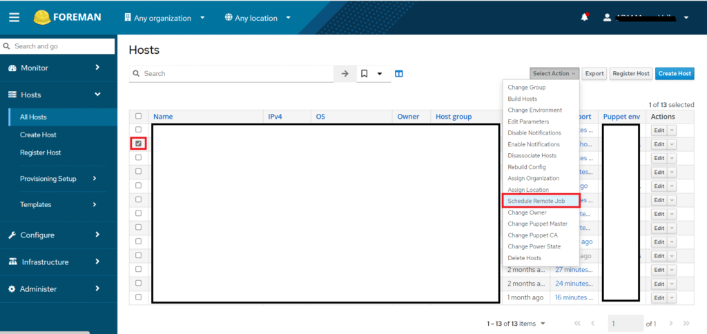 Navigare su Hosts > All Hosts e selezionare l’host o gli hosts su cui eseguire il job.