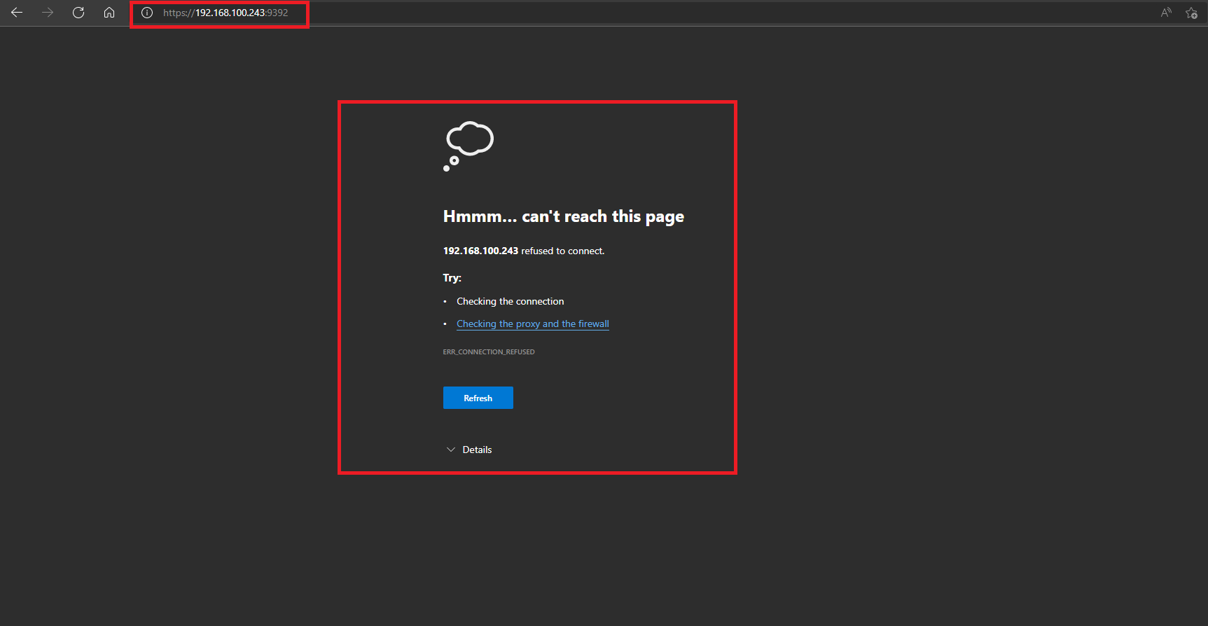 Vederemo una schermata come quella sovrastante e quindi non raggiungibile.