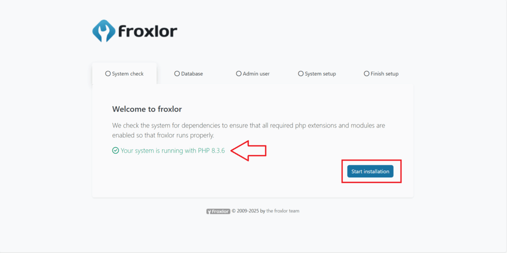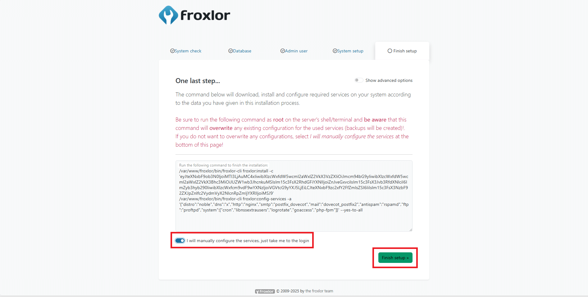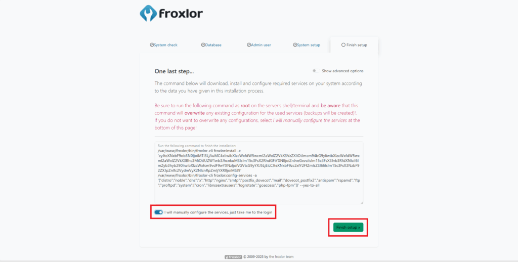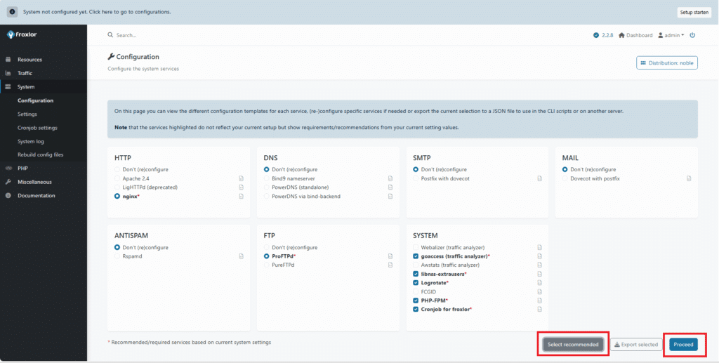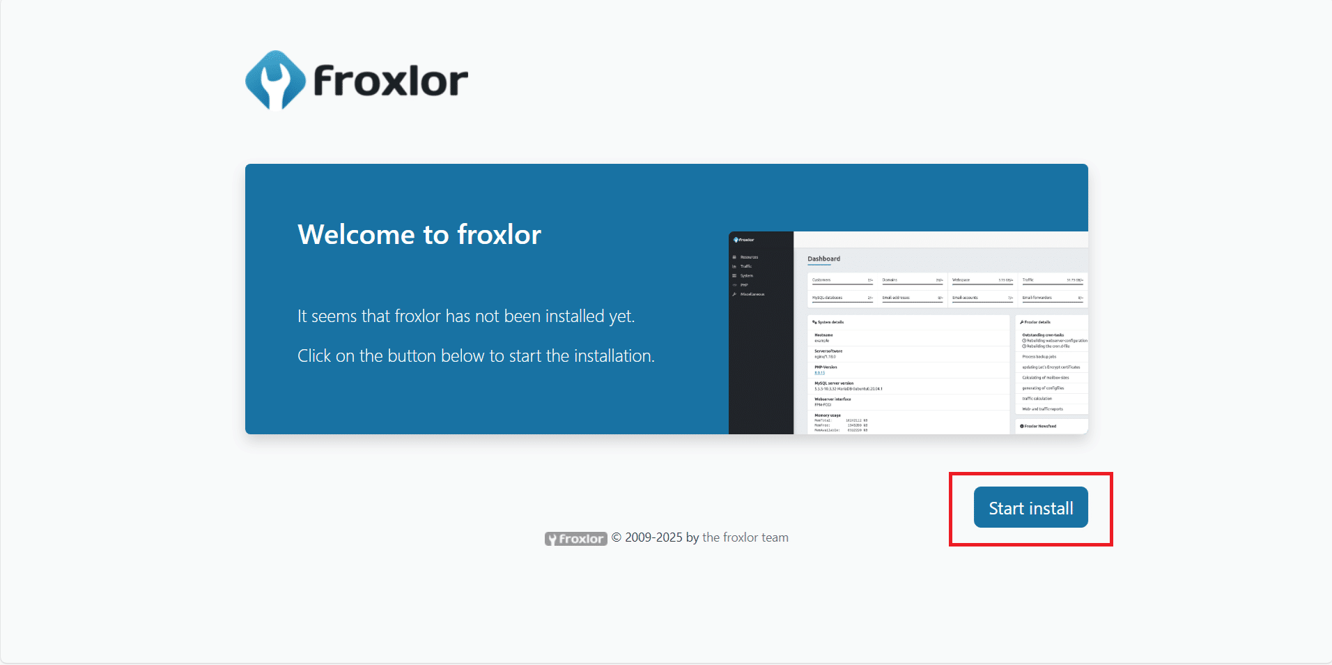 Significa che Froxlor non è ancora configurato: devi completare questa pagina e avviare la configurazione per rendere operativo il pannello.