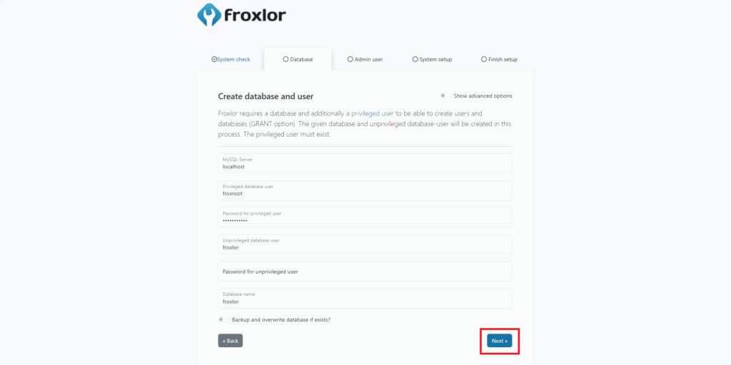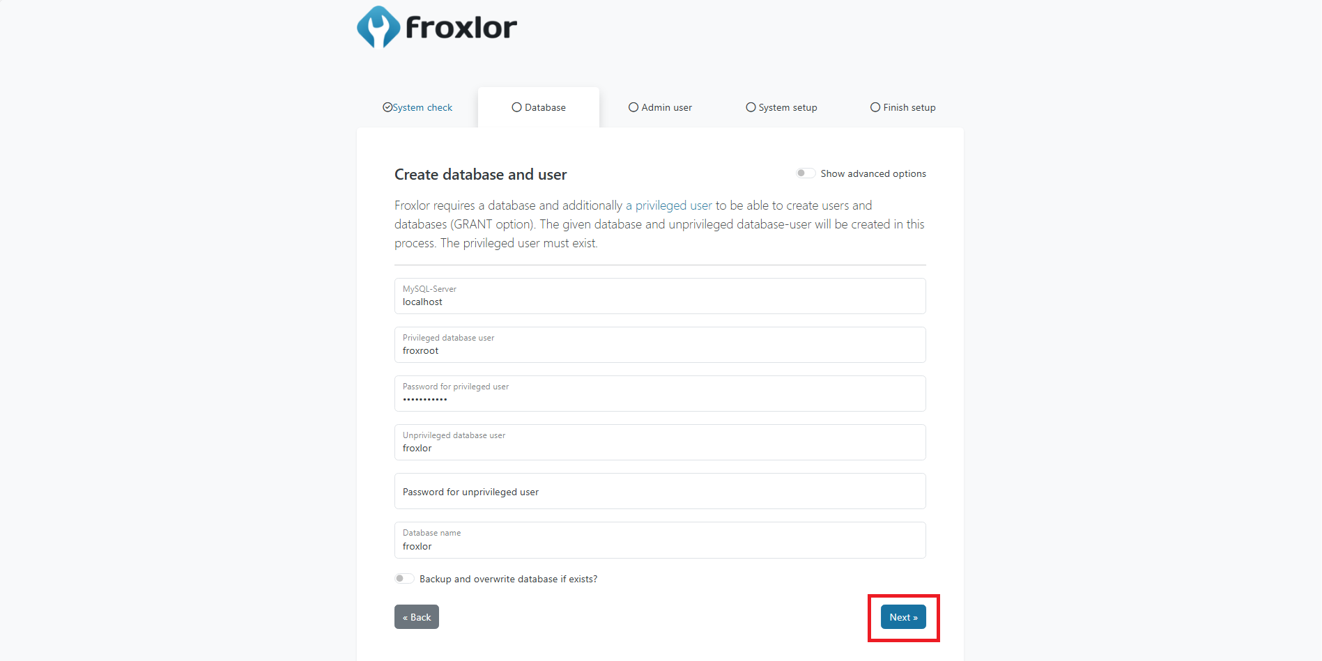 Il componente successivo necessario per l’esecuzione Froxlor è un databasxe server.