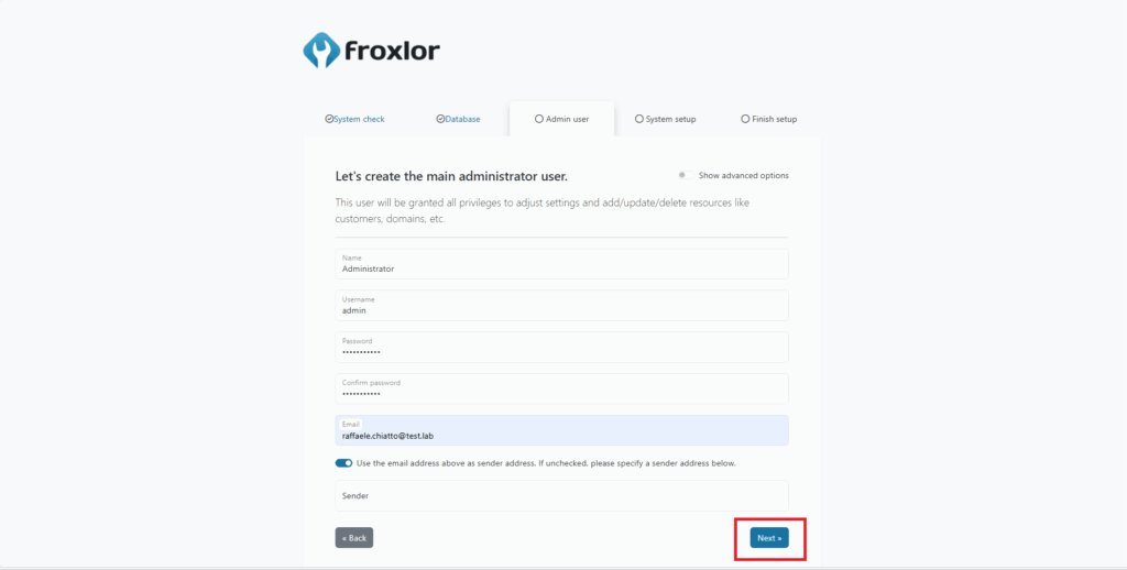 Come parte della configurazione, creeremo un account utente chiamato froxroot.