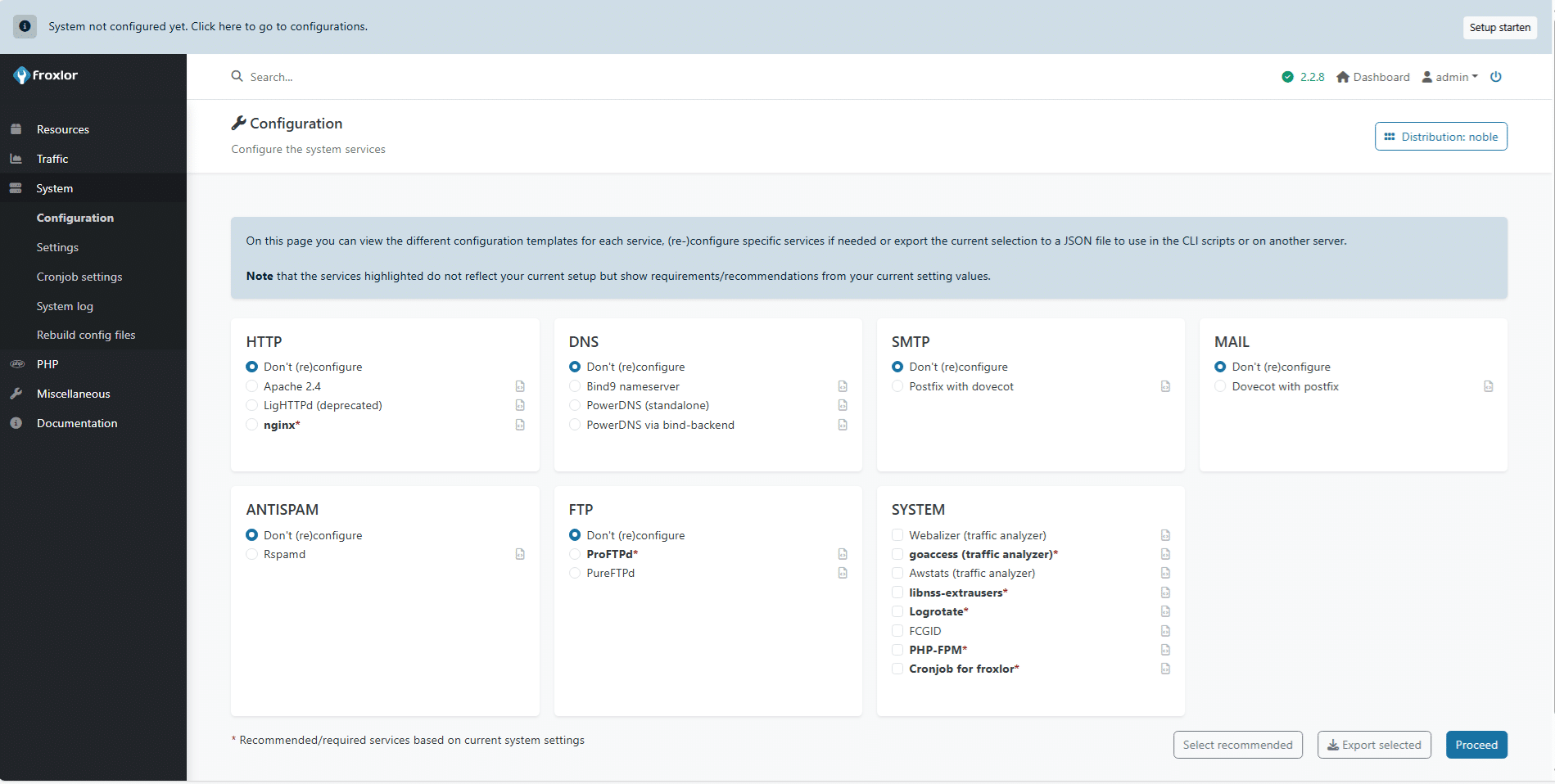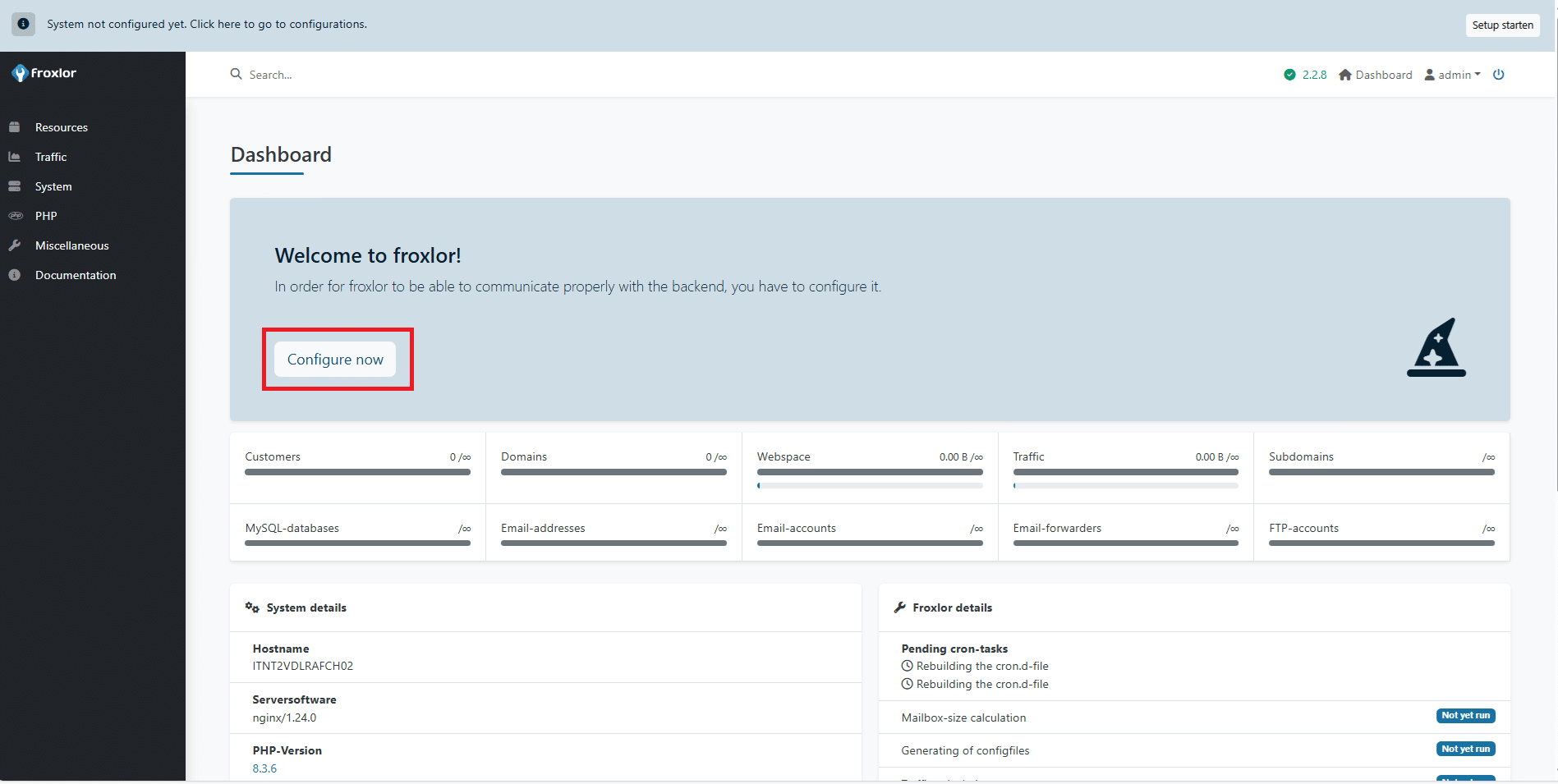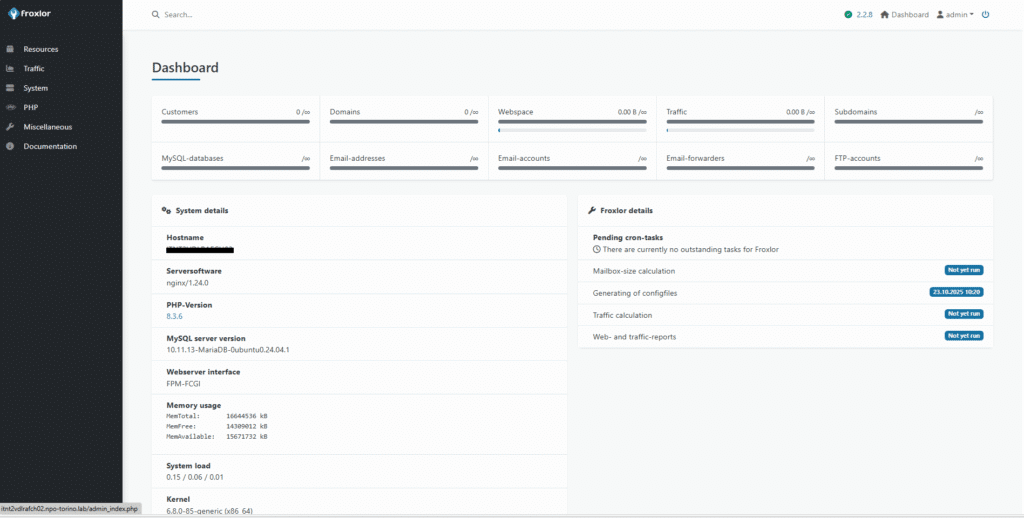 Dovremmo visualizzare la Dashboard di Froxlor come mostrato nell’immagine sovrastante