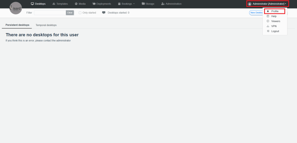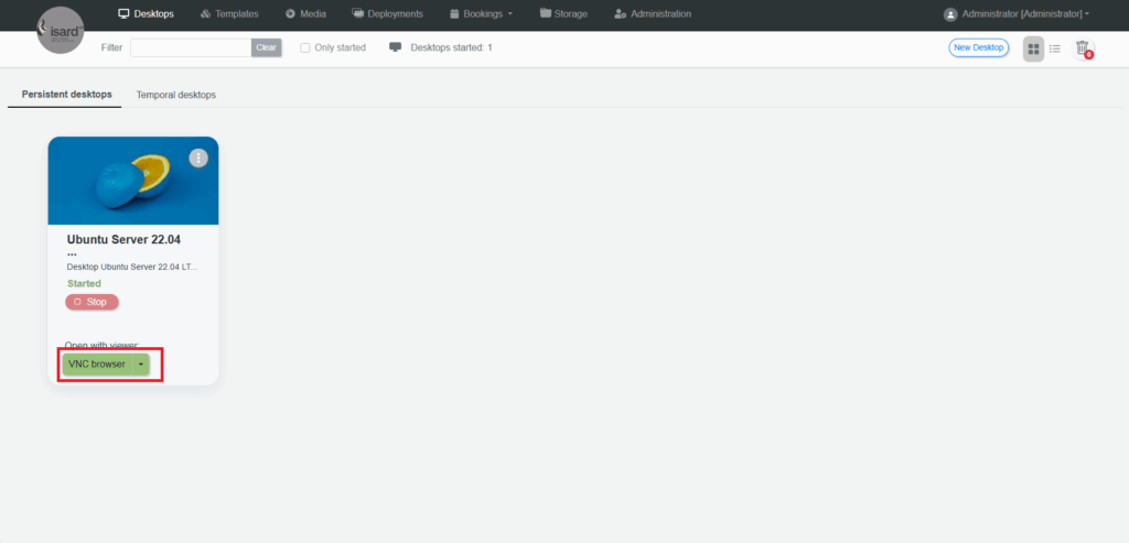 Dopo aver deploiato una VM accedere alla pagina dei Persistent Desktop e avviarla cliccando su Start