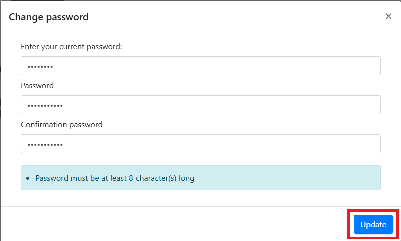 Inserire la password di default quindi due volte la nuova password e cliccare Update