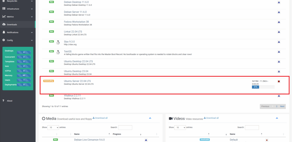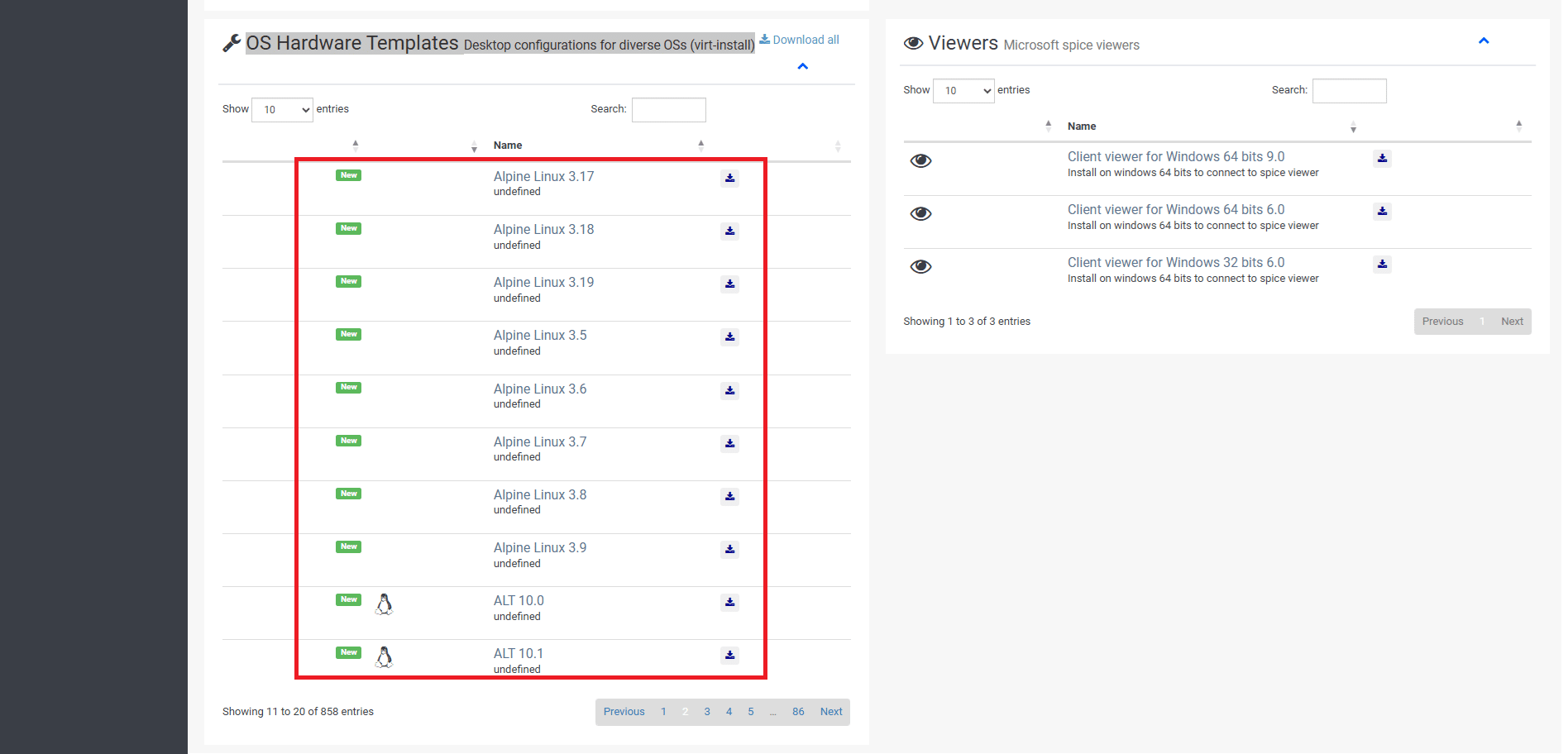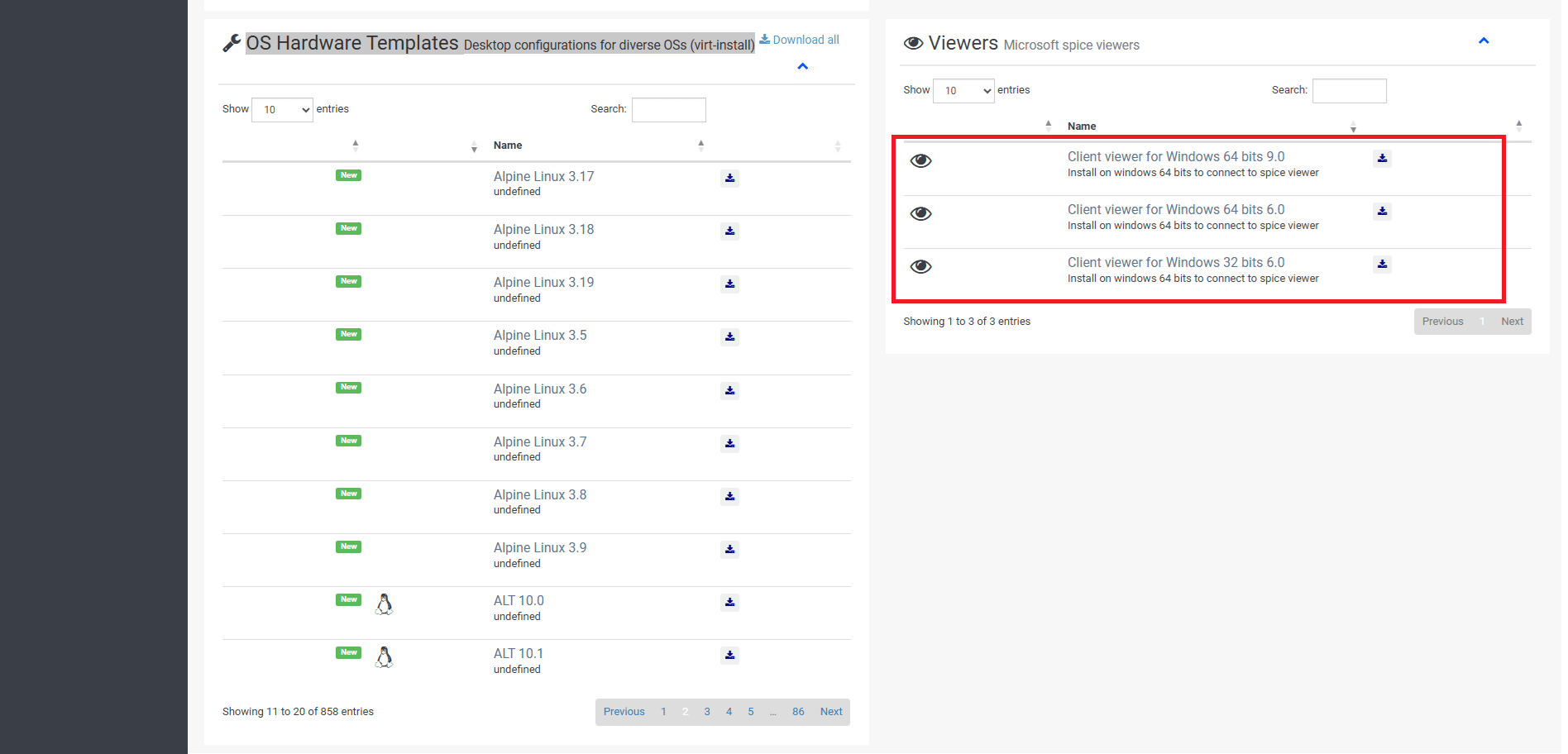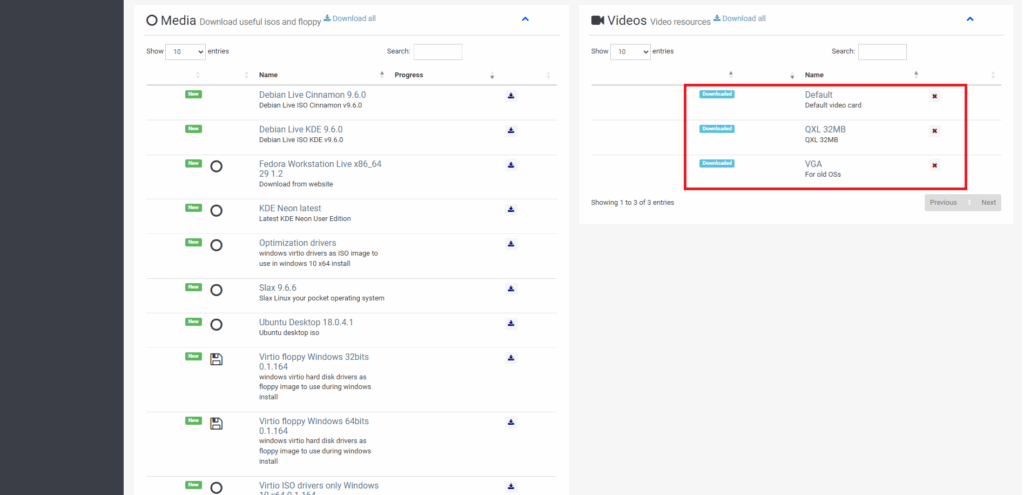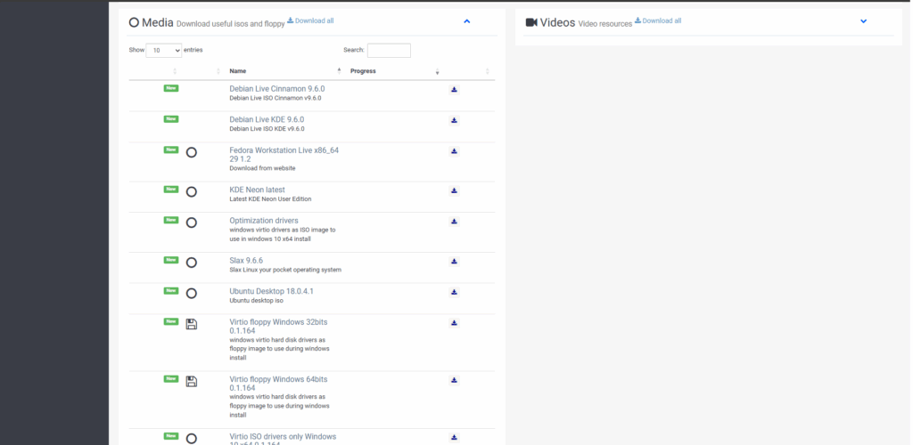 In questa sezione è possibile scaricare delle macchine virtuali (domini) già preconfigurate, che è possibile usare come base per creare rapidamente nuovi desktop virtuali.