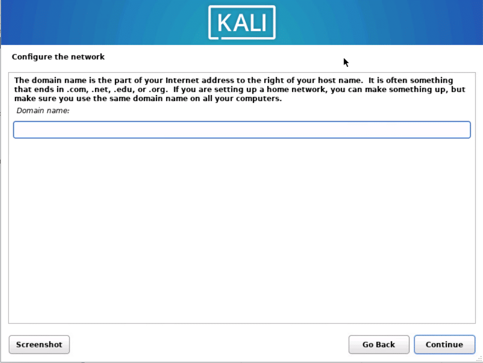 Inserire un dominio se presente altrimenti lasciare tutto in bianco e cliccare su Continue