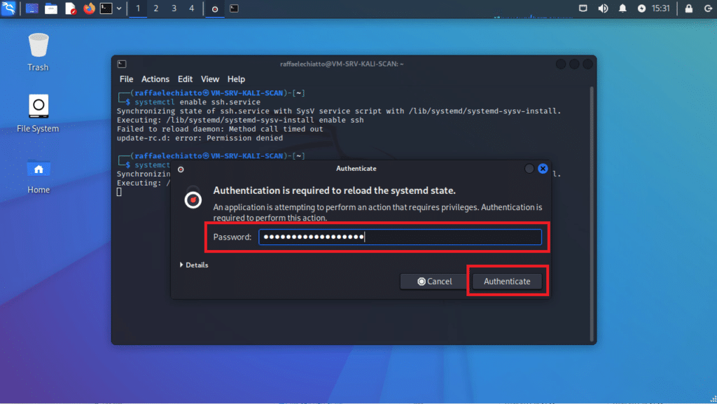 Di Default il server SSH non parte all’avvio della Kali Linux