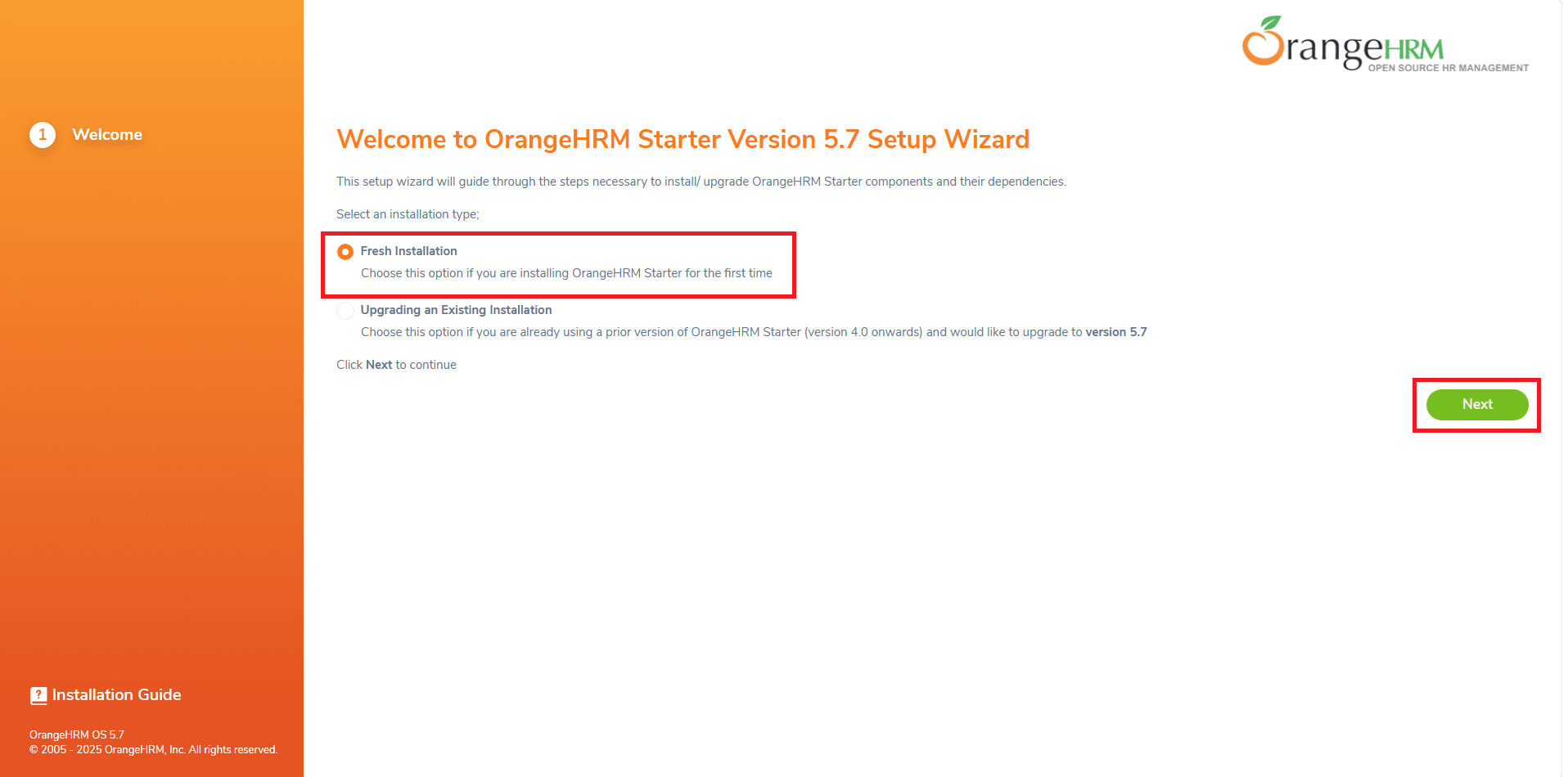 Selezionare Fresh Installation quindi cliccare Next