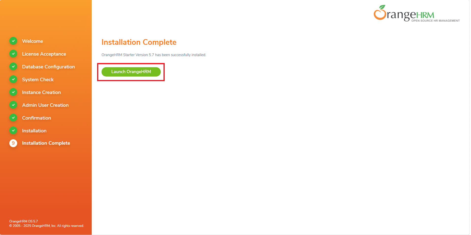 Cliccare Launch OrangeHRM