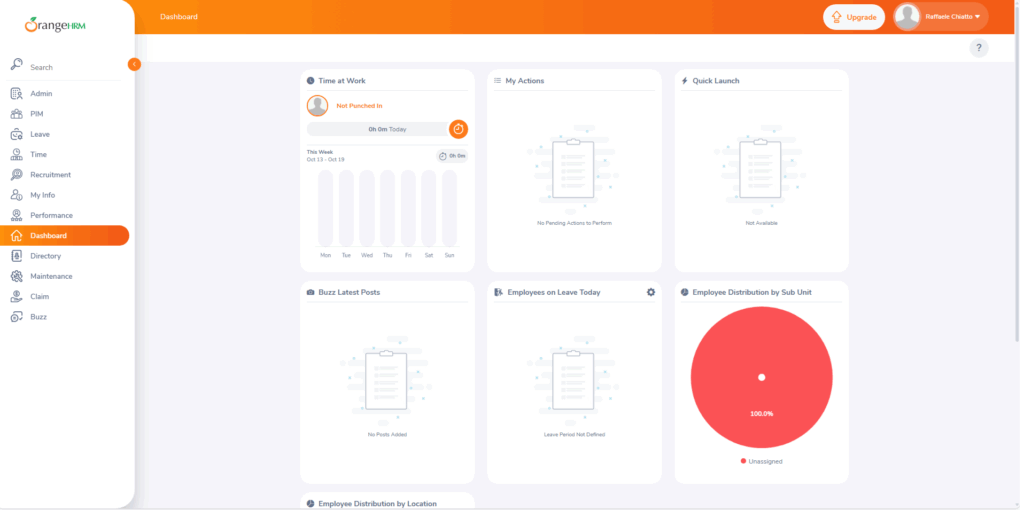 A questo punto dovremmo visualizzare la Homepage di OrangeHRM