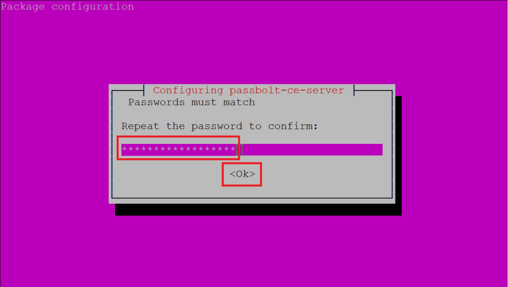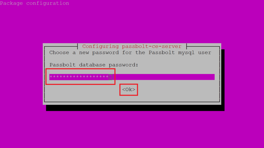 Definire l’utente per l’accesso al database (di default è passboltadmin) quindi cliccare OK