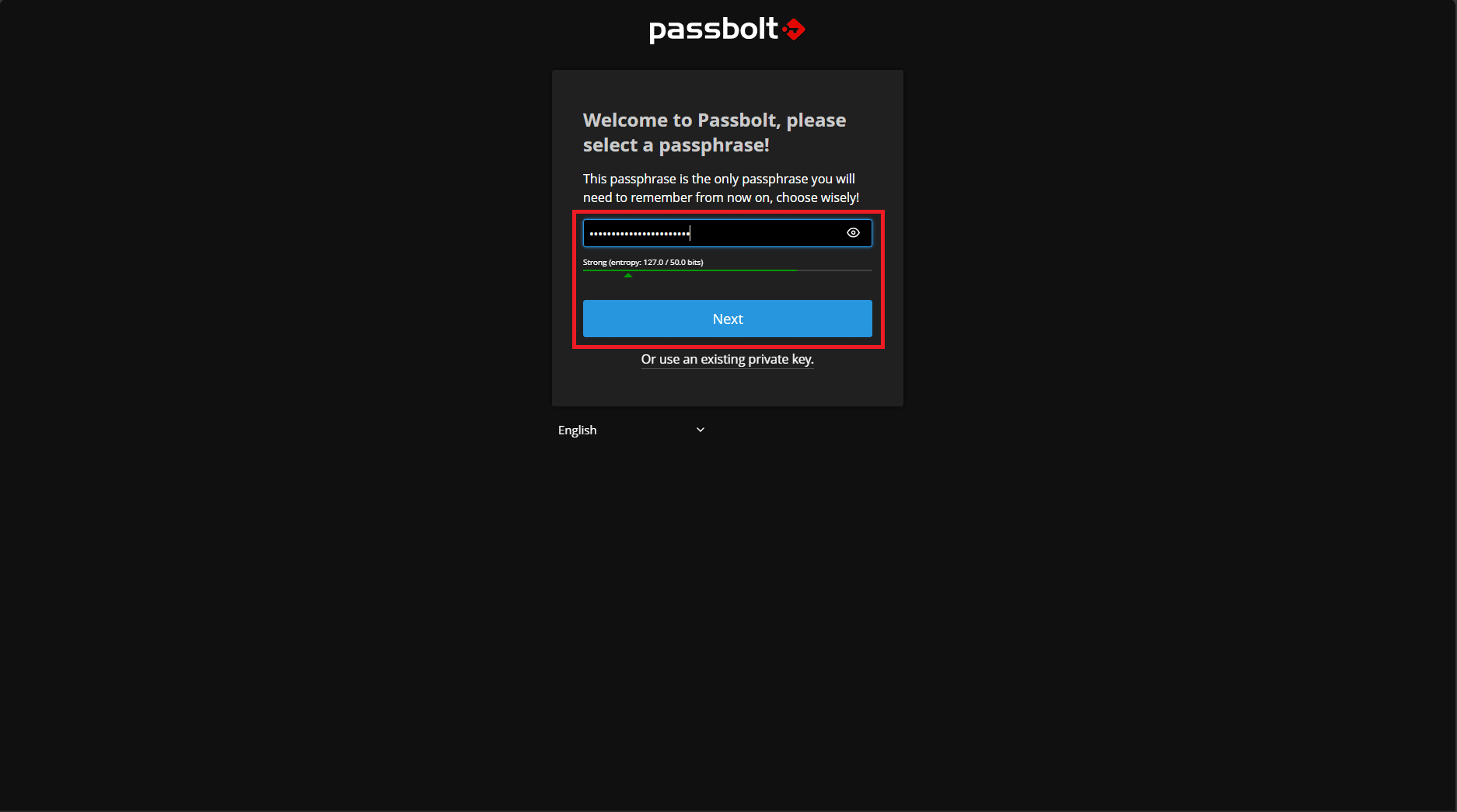 Dopo aver installato l’estensione del Browser inserire la Passphrase quindi cliccare Next