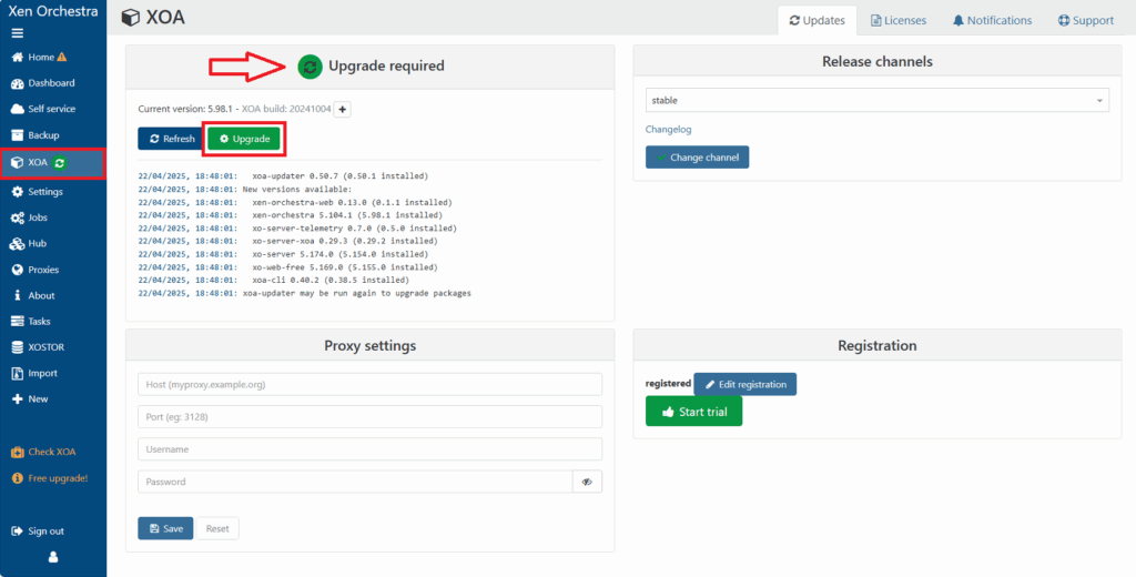 - Ricevi gli aggiornamenti software di XOA direttamente tramite l’interfaccia web, se hai una versione distribuita ufficialmente (come XOA in a Box o XOA installata via xo-install).