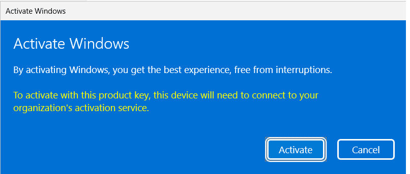 Dovrebbe venir mostrata una finestra come la seguente per avvertirci che verrà contattato il KMS, cliccare su Activate: