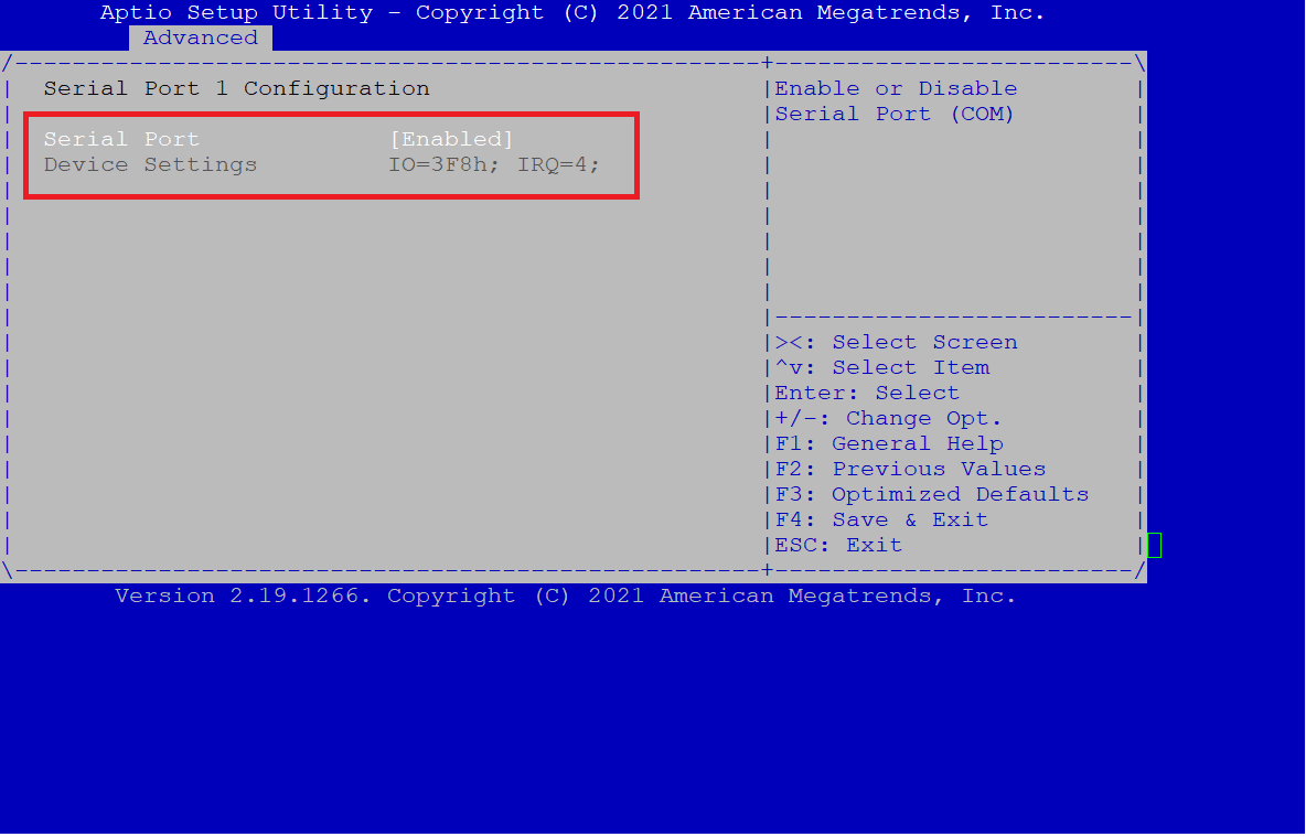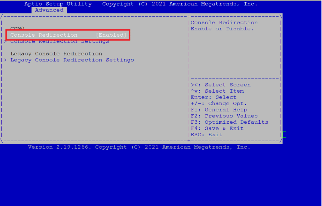 Individuare nel BIOS la voce Serial Port Console Redirection