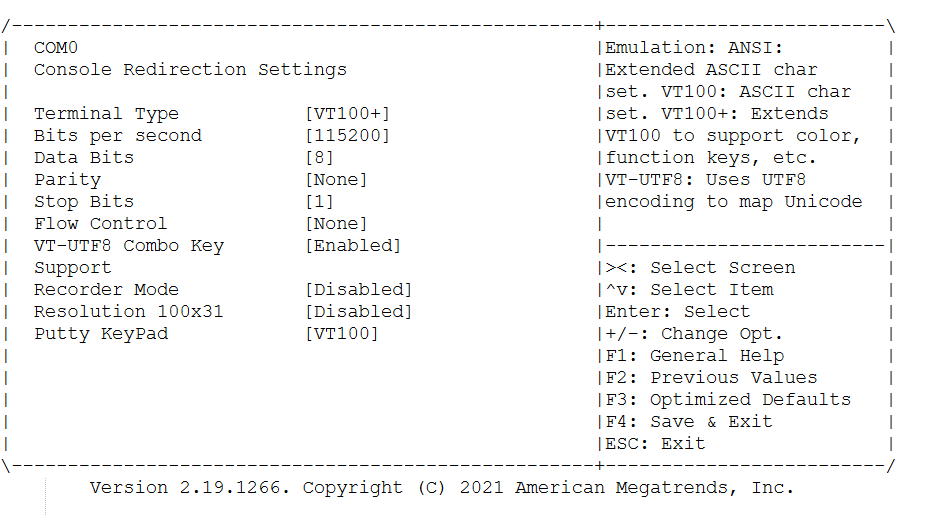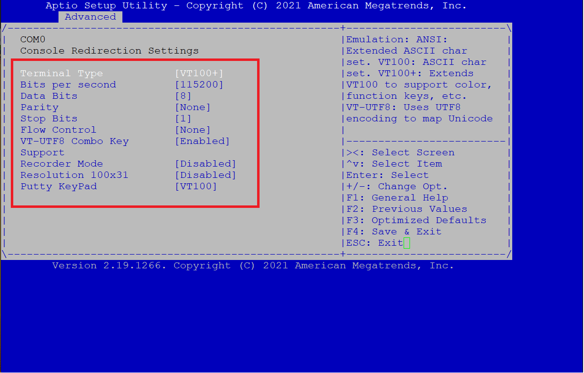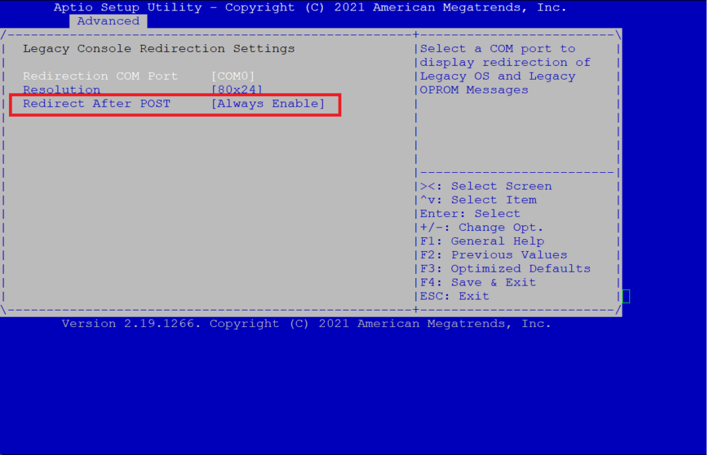 Accertarsi che il parametro Redirection After BIOS POST sia attivo come mostrato nell’immagine sovrastante