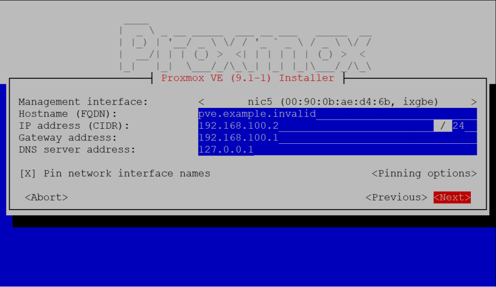 Inserire la configurazione di rete scegliendo la scheda corretta quindi Next