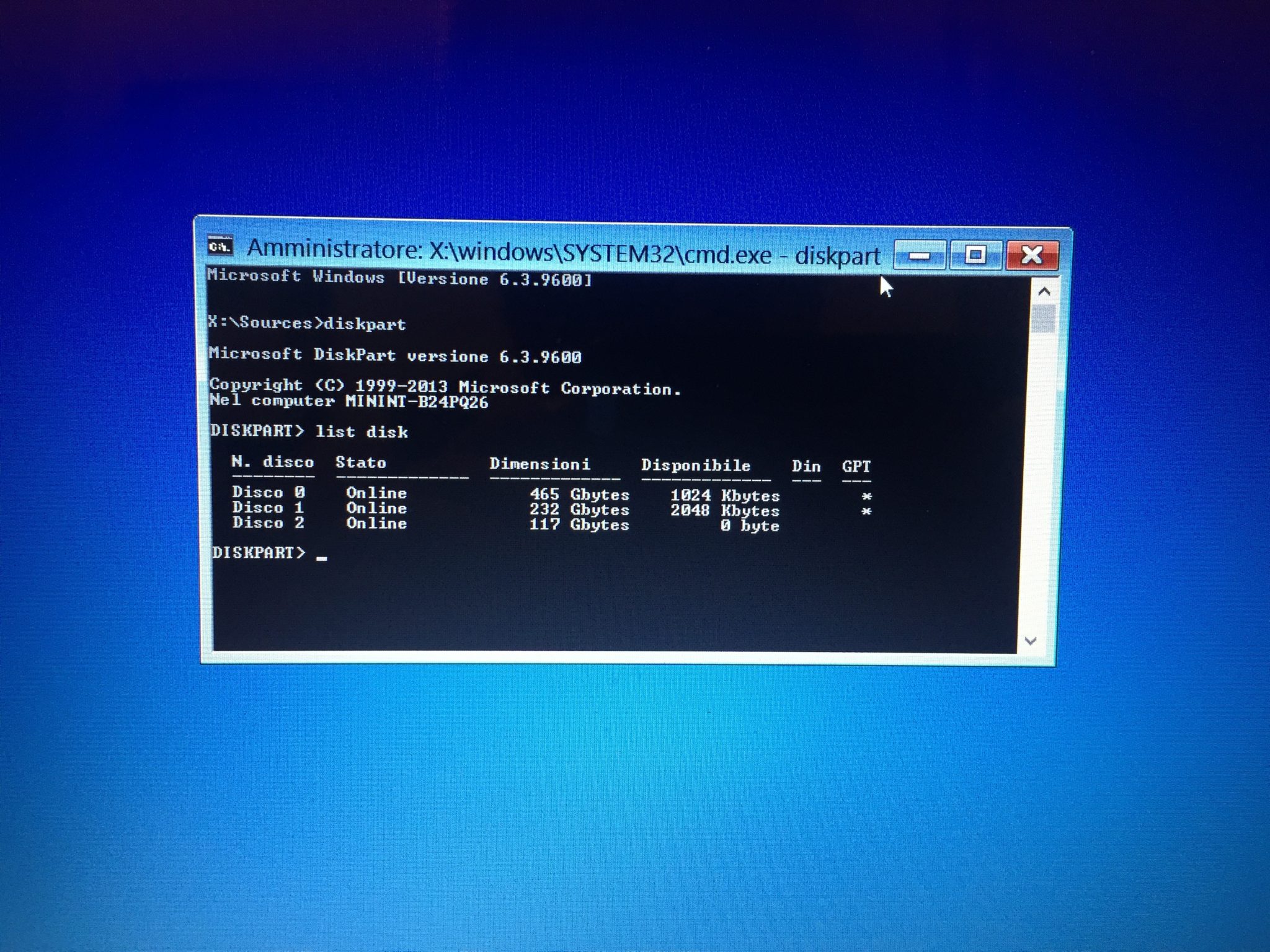 Lanciare il comando exit per uscire dal diskpart